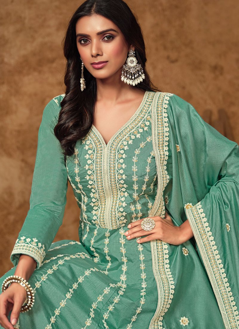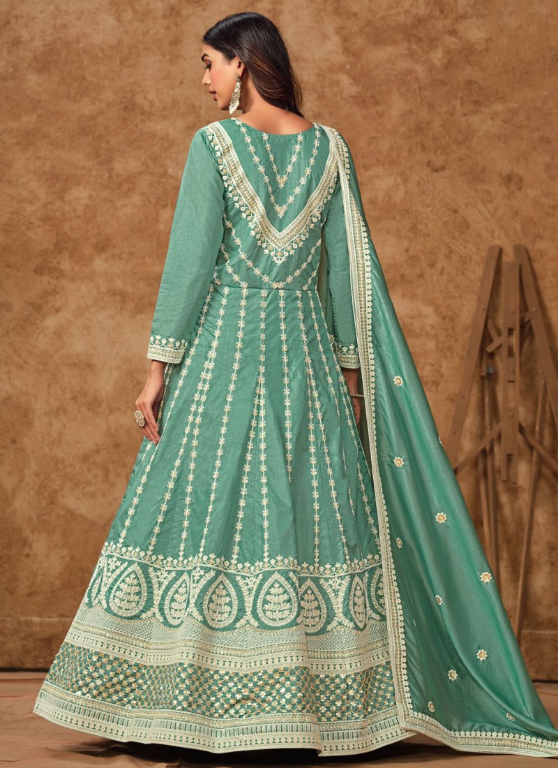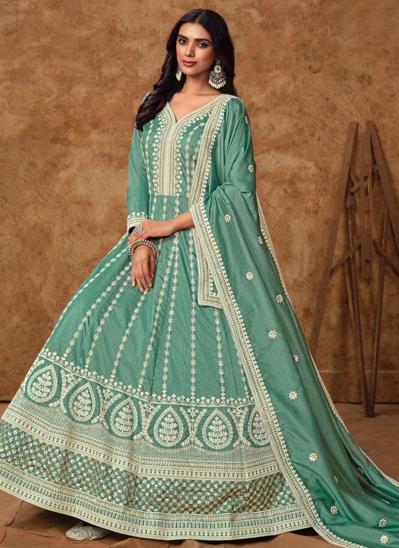 This aqua blue pure-dola trendy gown is adding the beautiful glamorous displaying the sense of cute and graceful. You could see some intriguing patterns carried out with embroidered and zari work. (Slight variation in color, fabric & work is possible. Model images are only representative.) Notice: Undefined index: variation_group_type_id in /var/www/html/hopestyling.com/catalog/view/theme/sreeda-pro/template/product/product.tpl on line 625