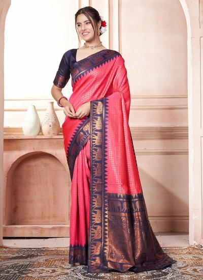 Breathtaking Kanjivaram Silk Woven Purple and Rani Classic Saree