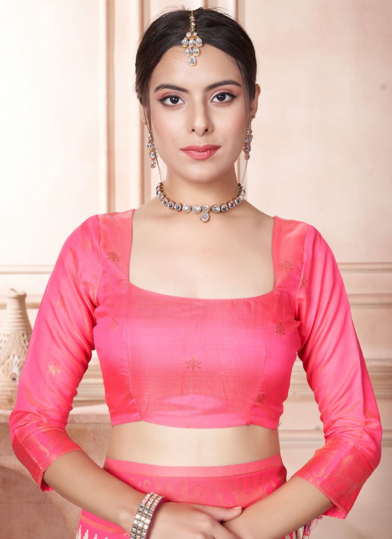 Design and pattern will be on the peak of your magnificence when you attire this cream and pink kanjivaram silk designer saree. The ethnic woven work in the dress adds a sign of splendor statement with your look. Comes with matching blouse. (Slight variation in color, fabric & work is possible. Model images are only representative.)