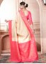 Cream and Pink Kanjivaram Silk Woven Designer Saree