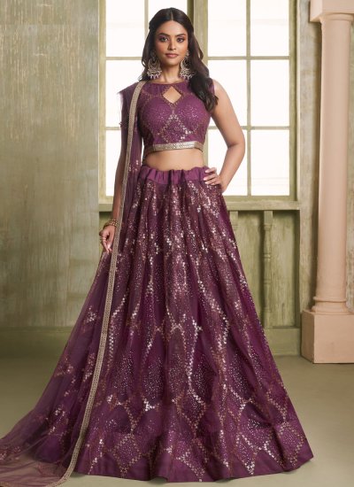 Ravishing Embroidered Net Wine Designer A Line Lehenga Choli