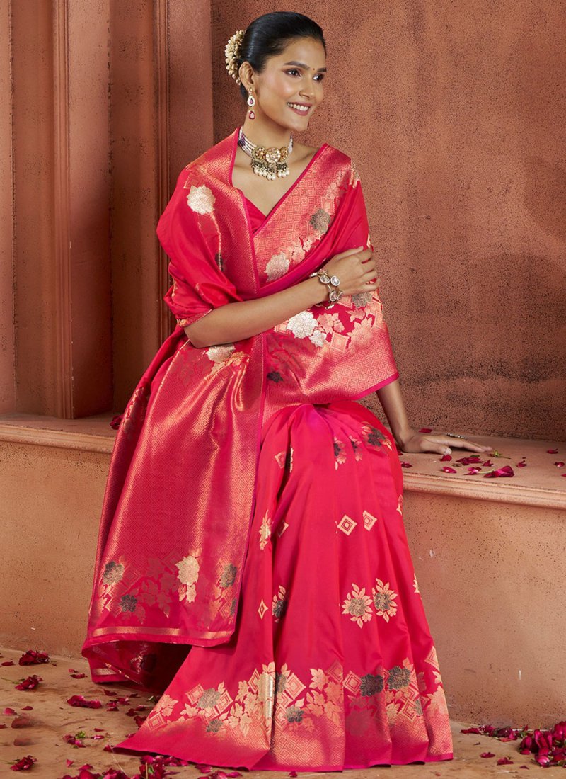 Mod Banarasi Silk Weaving Pink and Rani Classic Saree
