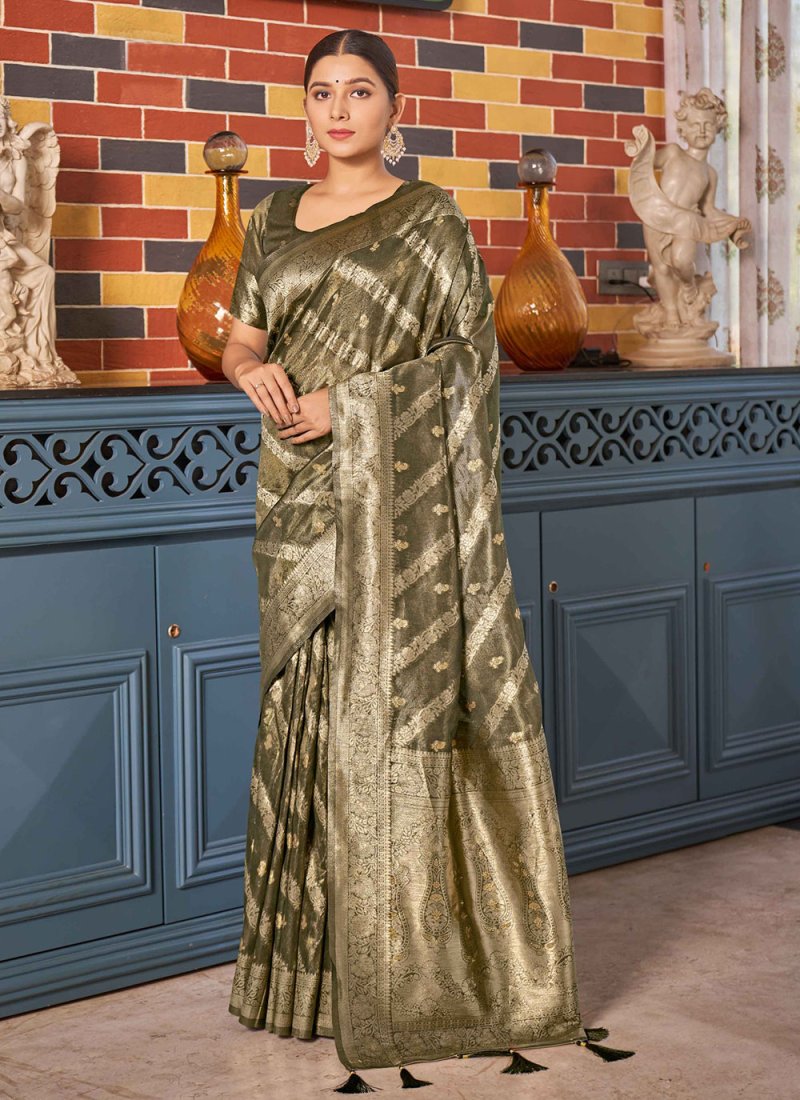 Designed with simplicity with a touch of soberness in its work makes a masterpiece. This green shimmer and silk classic saree is including the desirable glamorous displaying the sense of cute and graceful. Beautified with woven work all synchronized well through the pattern and style of the attire. Comes with matching blouse. (Slight variation in color, fabric & work is possible. Model images are only representative.)