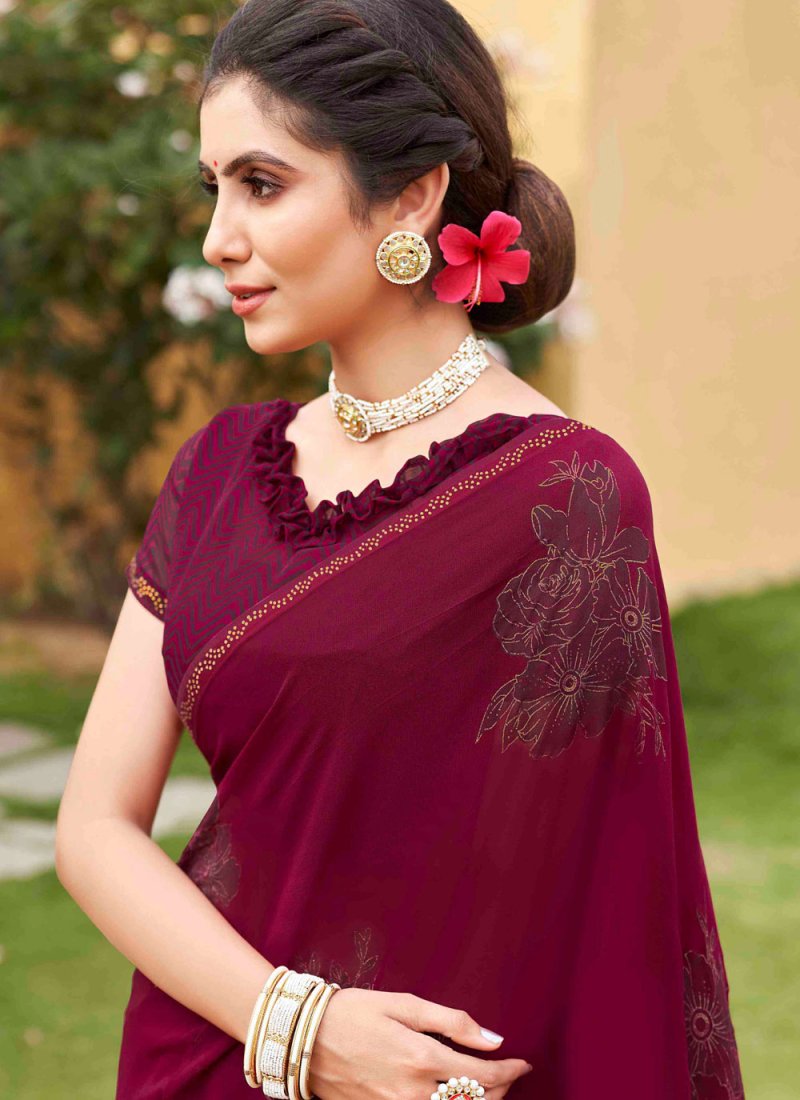 Burgundy Georgette Party Classic Saree