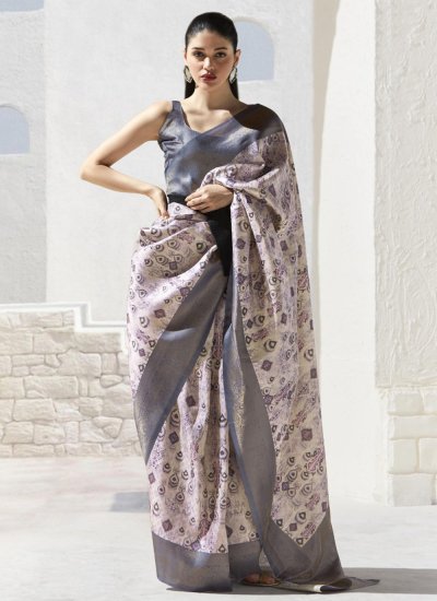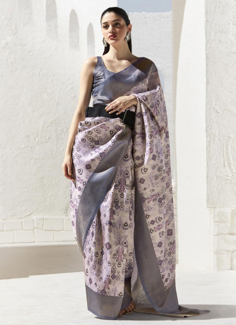This grey and pink art silk classic saree is including the wonderful glamorous showing the feel of cute and graceful. The interesting border, digital print and zari work in the course of the dress is awe inspiring. Comes with matching blouse. (Slight variation in color, fabric & work is possible. Model images are only representative.)