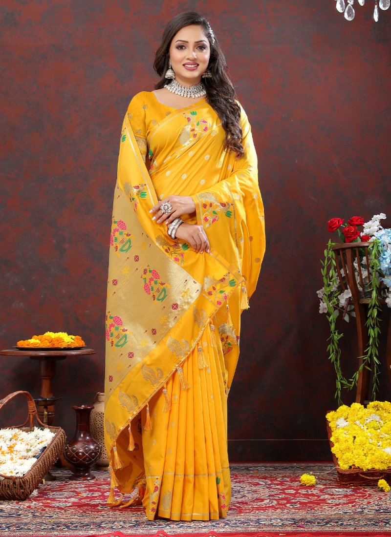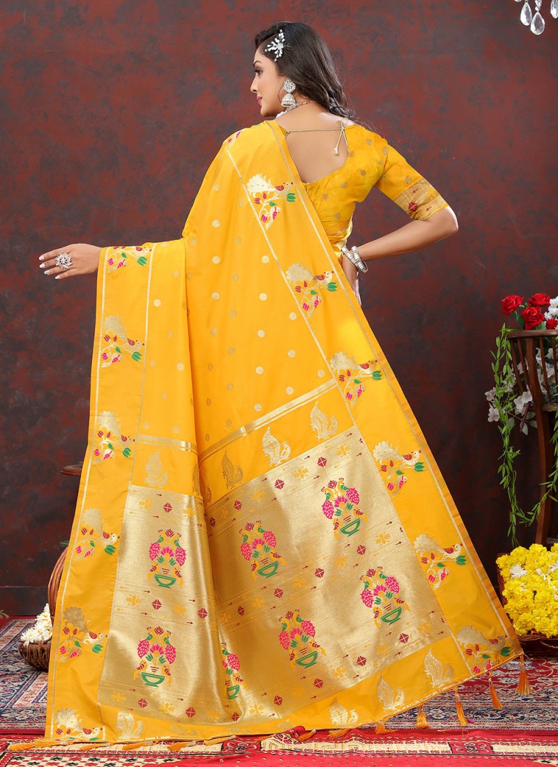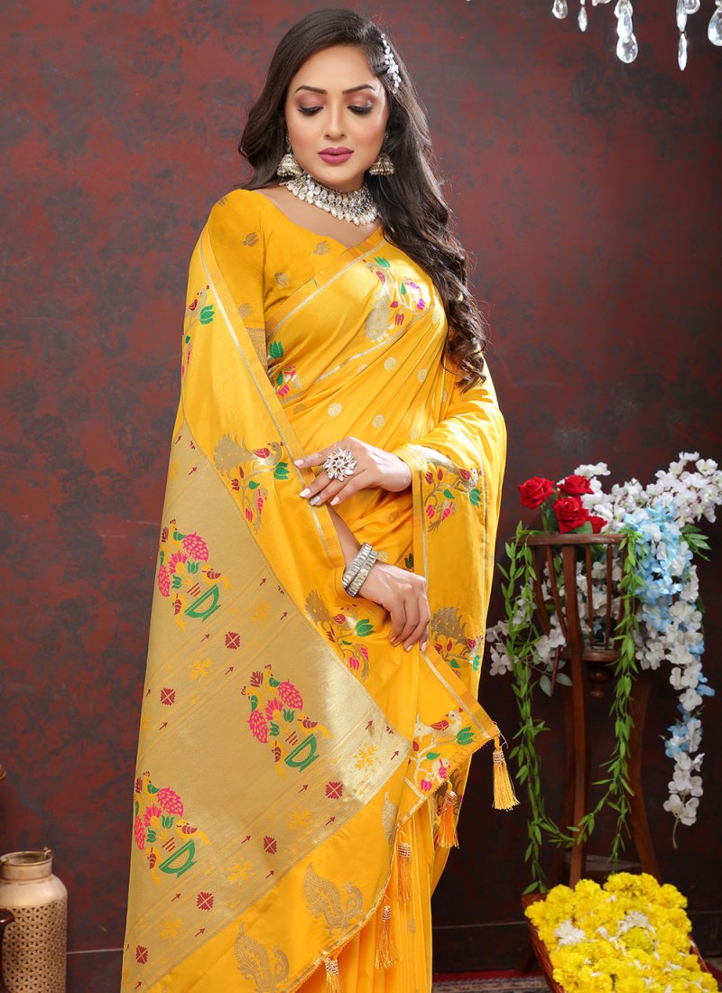 Trendy Silk Weaving Yellow Contemporary Style Saree