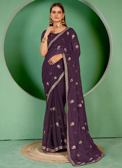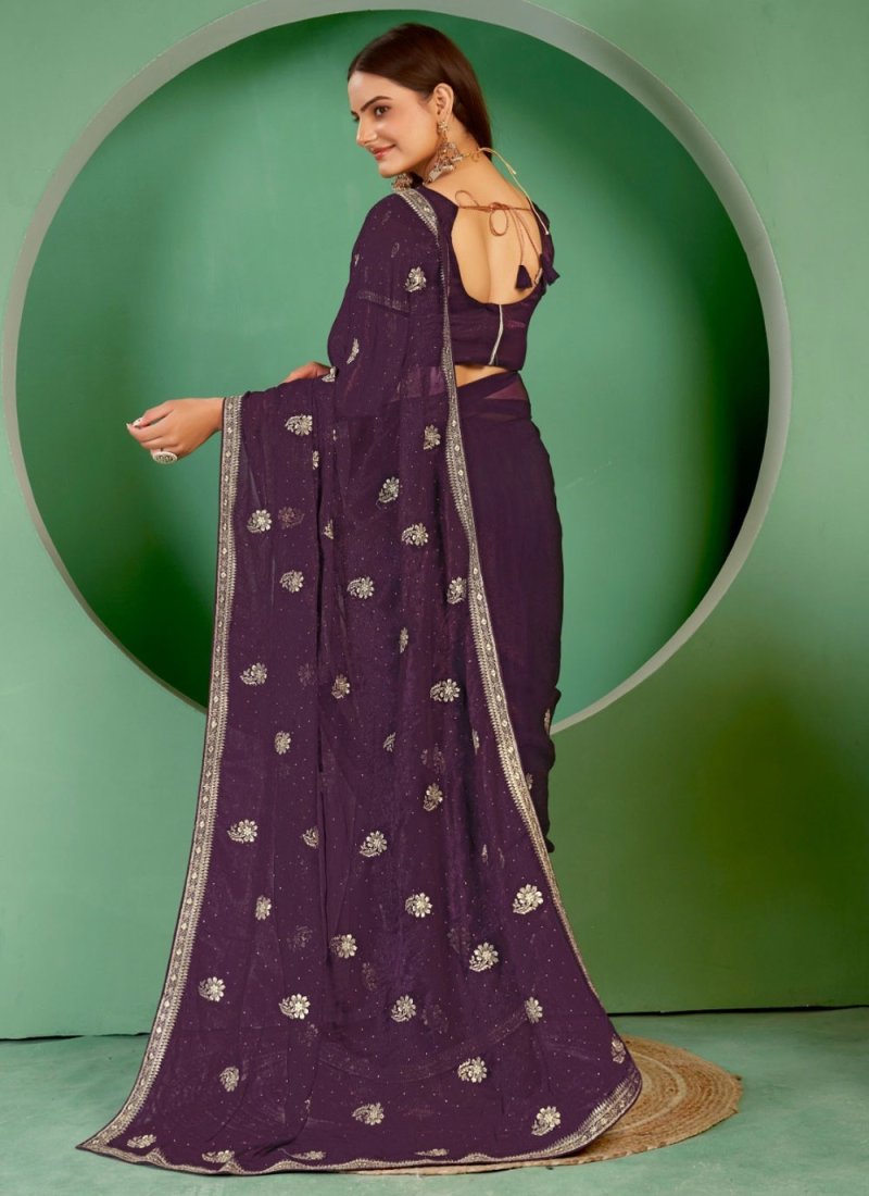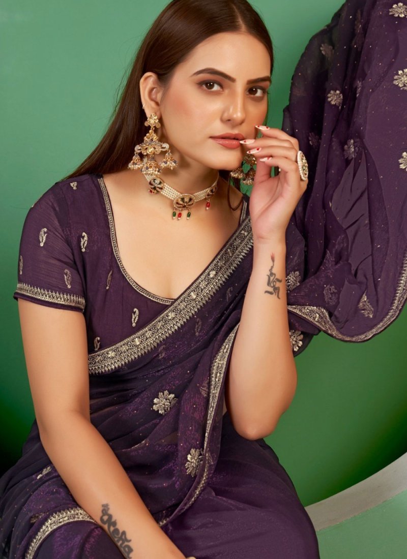Shimmer Purple Swarovski Trendy Saree